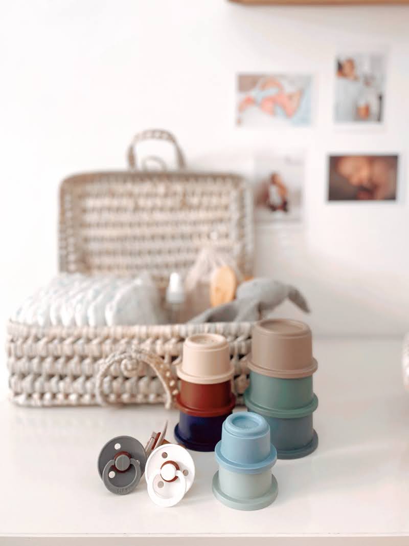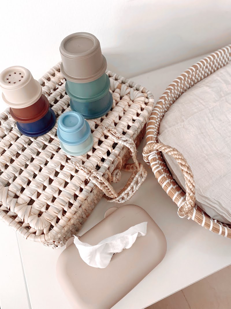 El mobiliario es el mismo que tengo, una cómoda de Ikea donde guardamos todos sus enseres de higiene como pañales, cremas, baberos, colonias…. el segundo cajón es el de los bodies y pijamas y por último en el tercer cajón guardo los textiles de hogar de Bosco, sábanas, bajeras, muselinas, mantas… etc.