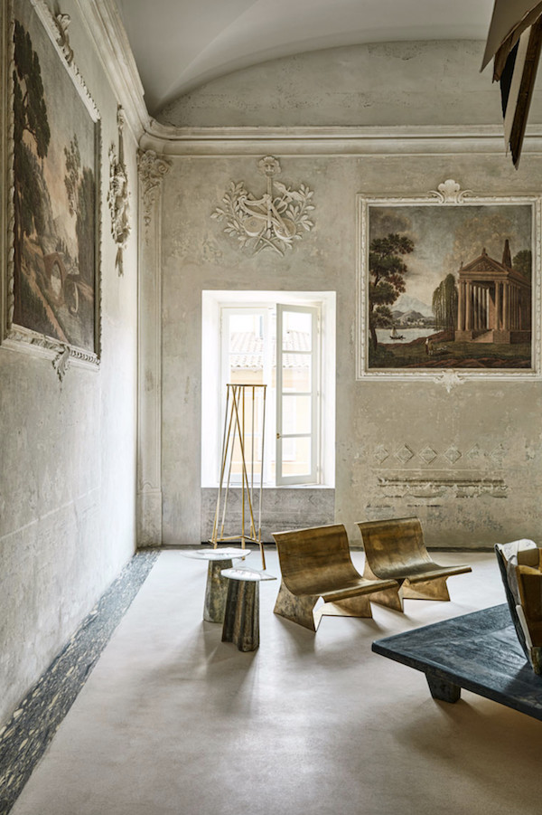Whenever in Milan I try to visit Vincenzo de Cotiis, see some pictures I took during my latest visit here: ANTHOLOGY | Vincenzo De Cotiis During the exhibition where next to his own, the work of several of my other favourite designers was shown. Today I love to show a few images of the cast aluminium brass chair by Vincenzo de Cotiis and how it is used in this private home designed by Vincenzo.