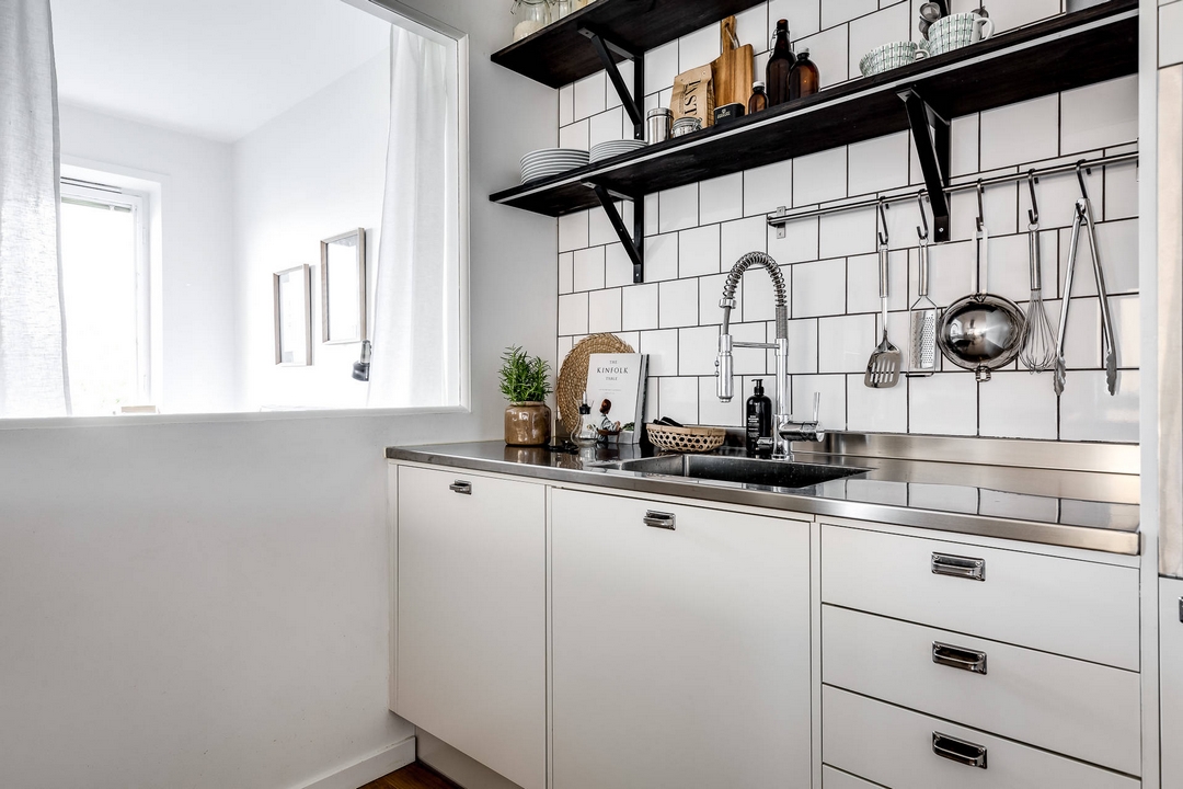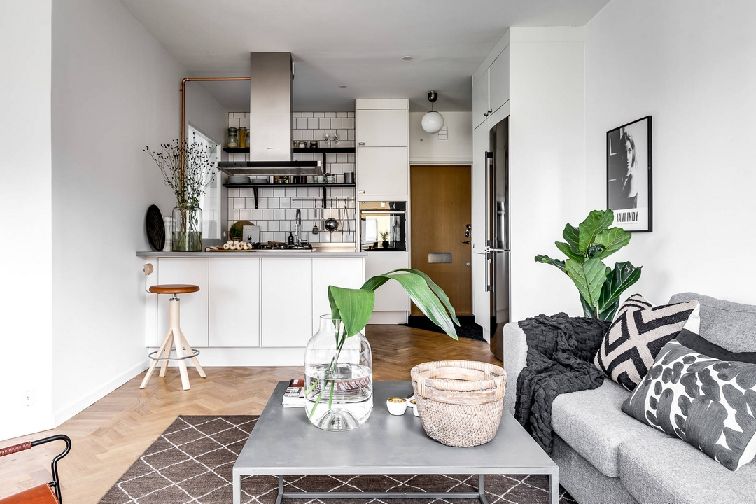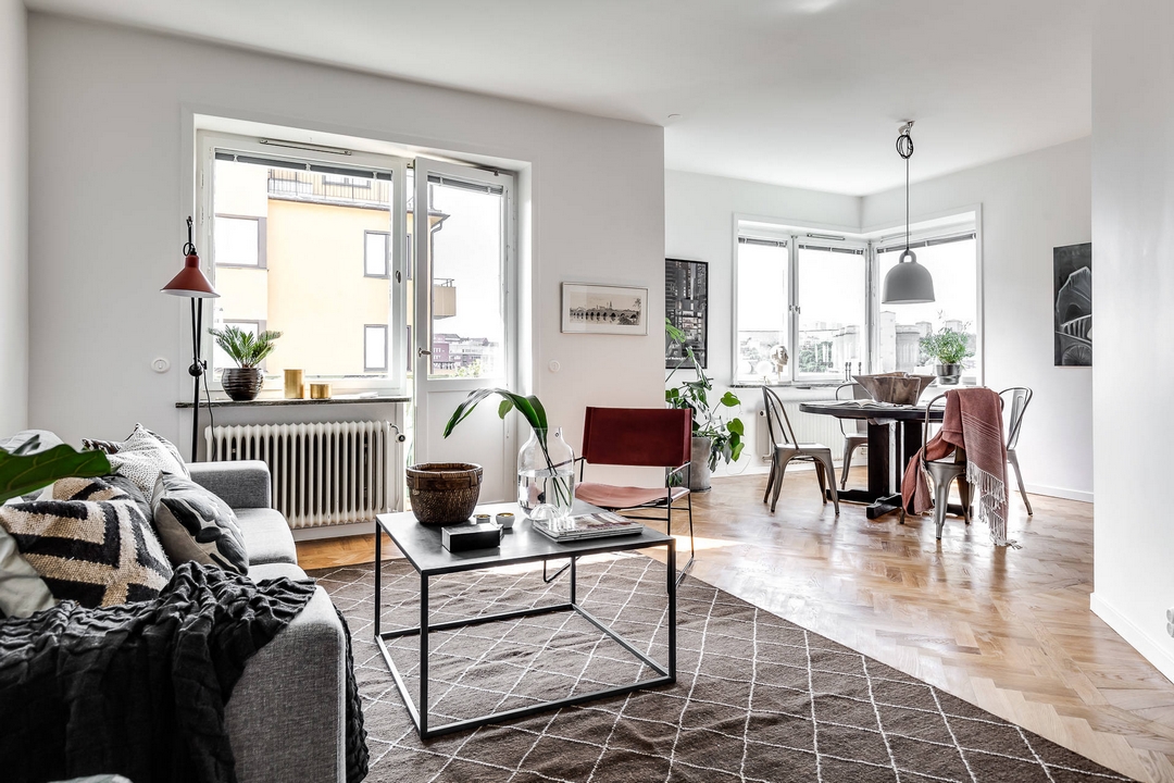 Cet appartement en angle offre une vue panoramique à la salle à manger et en plus, pour la cuisine, un double apport de lumière naturelle.