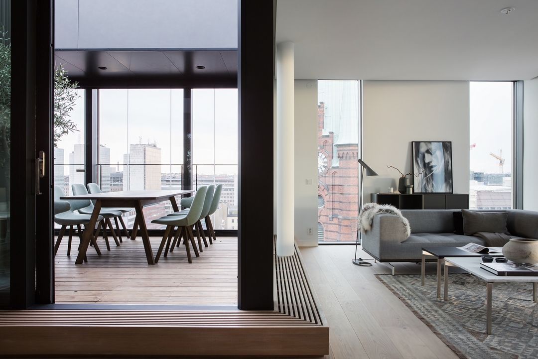 Une pièce de vie qui tourne autour d’un patio… ouvert sur le ciel ? ou pas ? on ne sait.