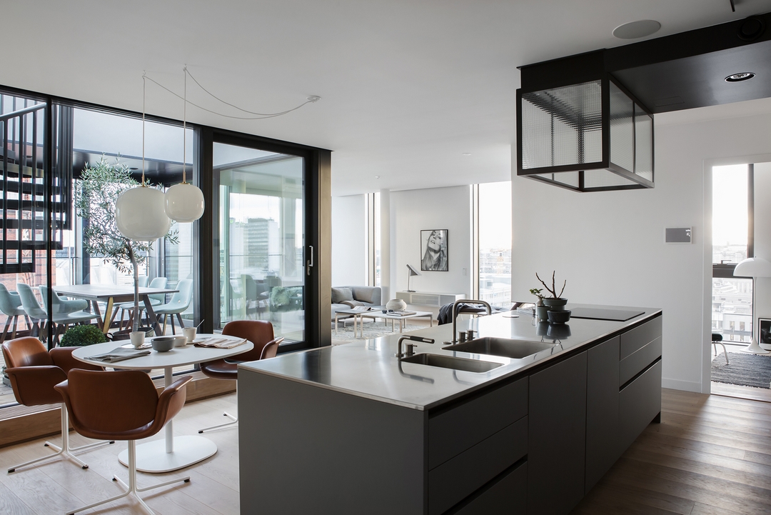 Red accents heat up this uniquely styled home interior located...