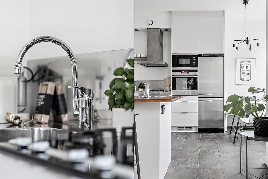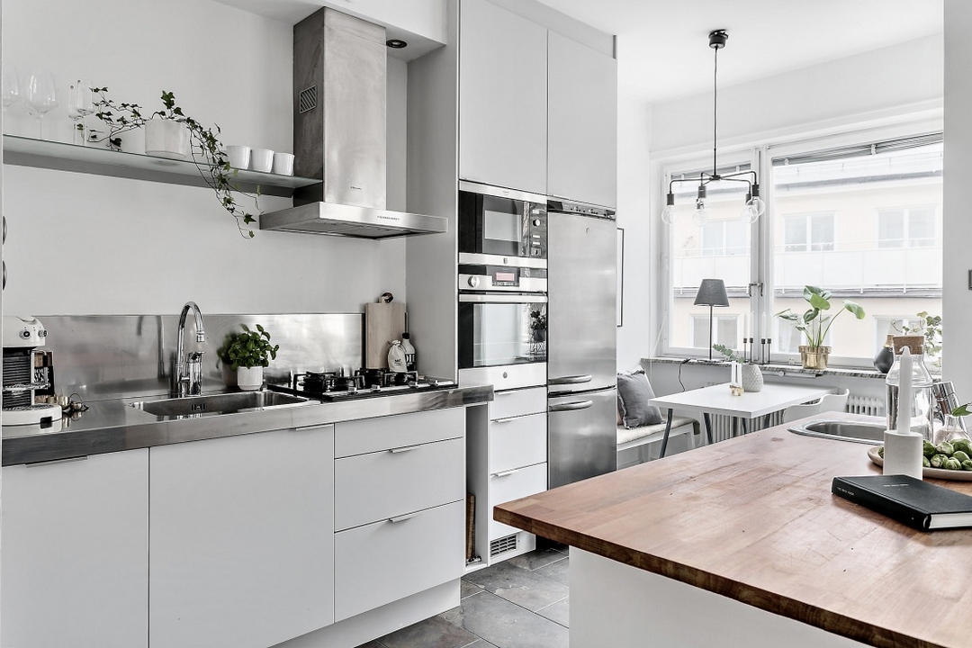 Un studio avec une vraie cuisine et un îlot central pour faire la séparation avec l’espace séjour, le tout baigné de lumière.