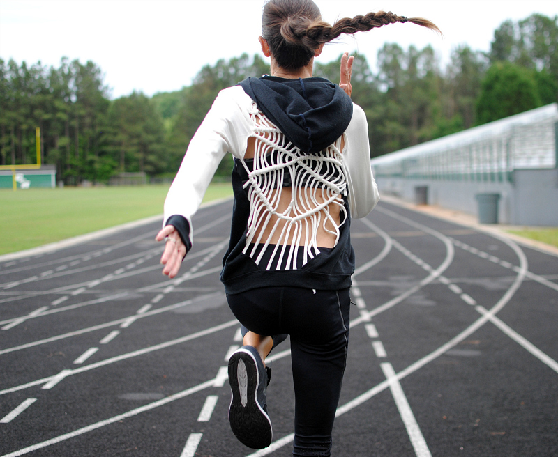 Recently I partnered with BurdaStyle to create looks each month with their sewing patterns. If you’ve been following along then you know that I’m not one to follow many sewing patterns. I’m kind of a self-draft type of gal, but BurdaStyle has my type of sewing patterns. They’re all pdf so you can just download them, print, and piece together right away. The designs are modern, unique, and simple to follow. For my first few projects I wanted to do a Black N White themes sports collection. I’ve recently been getting into sewing sportswear and now that I’ve got the hang of it I wanted to make something that was one-of-a-kind. I’ve always been into creating textiles specifically with the technique macrame, which I wanted to add to the back panel. I sketched out my idea and then used the Hoodie 01/2017 #103 as my pattern.