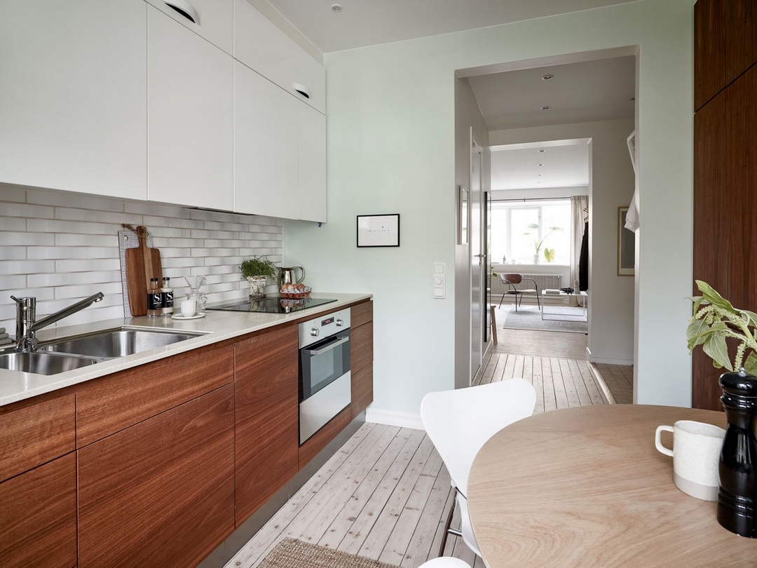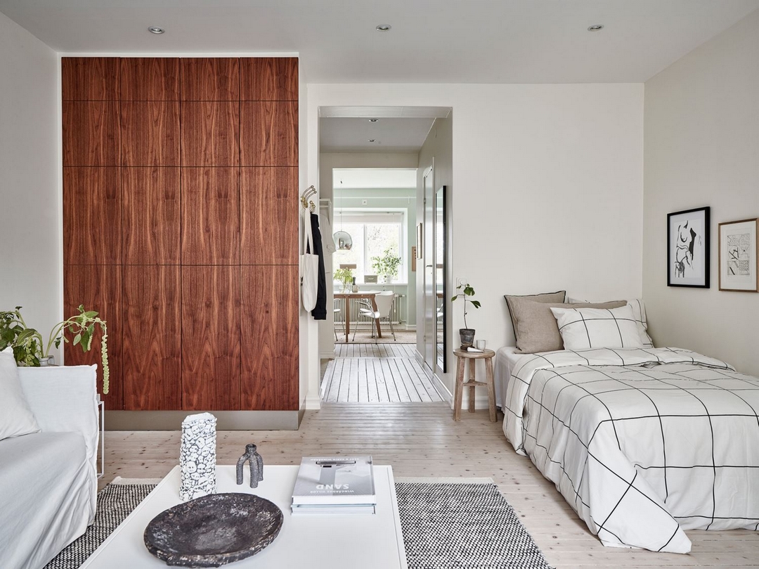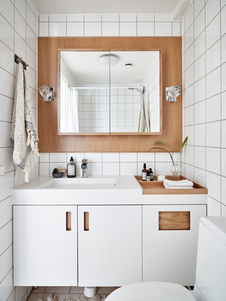 Un petit espace de 38 m², aussi chic que chaleureux avec ce mélange de bois veiné et de teintes claires et naturelles.