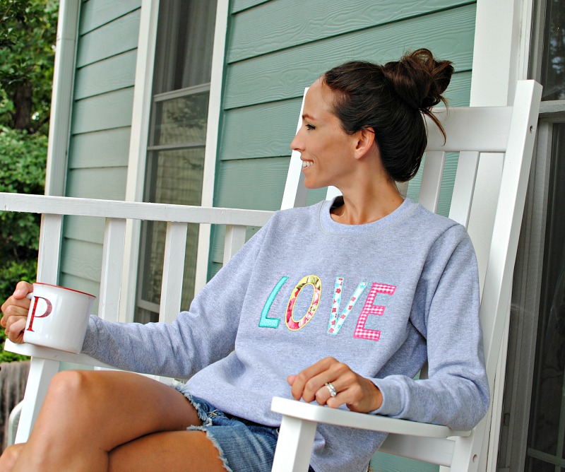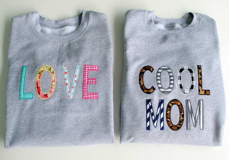 With more days spent at home and outside, I found my “momiform” is a lot of comfy clothing these days. Of course I need a good sweatshirt in the mix for cooler mornings and evenings. Being a designer I felt inspired to customize the sweatshirt with cute wording like “LOVE” and “COOL MOM” using applique letters. I really liked this collection from OESD Floral Alphabet Appliques and they have plenty of other options to choose from. This is a great way to add a design to a sweatshirt and great gift ideas too. Get the details below to make your own.