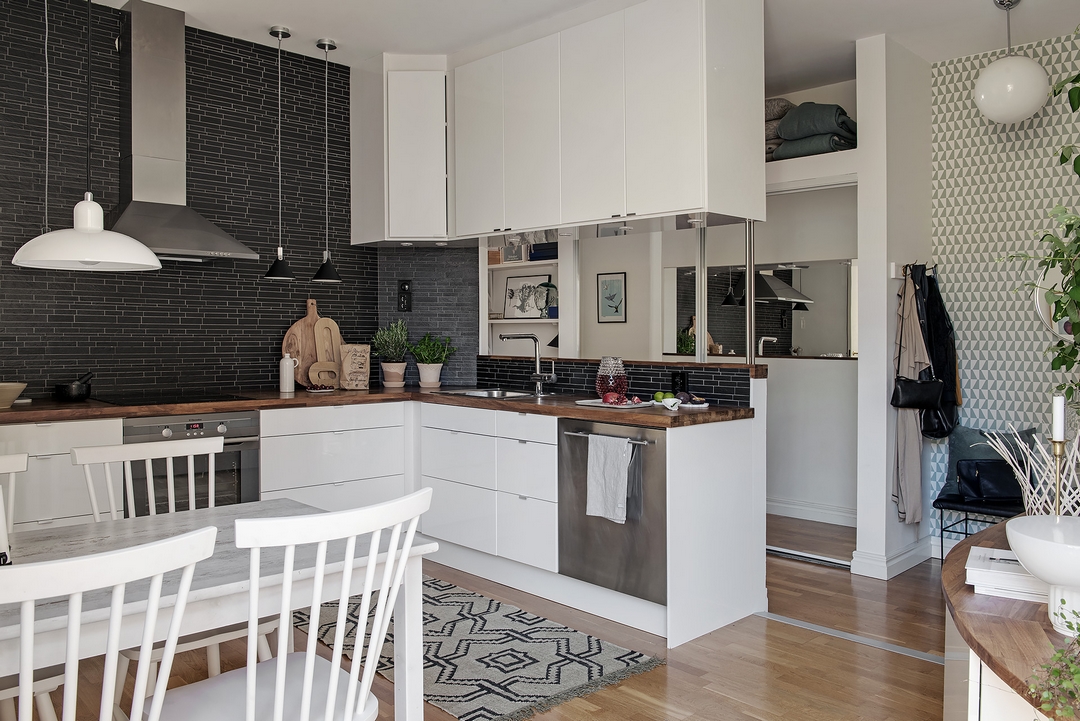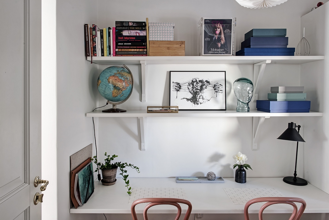 Un large bureau installé dans une entrée ou un couloir… une idée facilement reproductible si on dispose de l’emplacement adéquat.