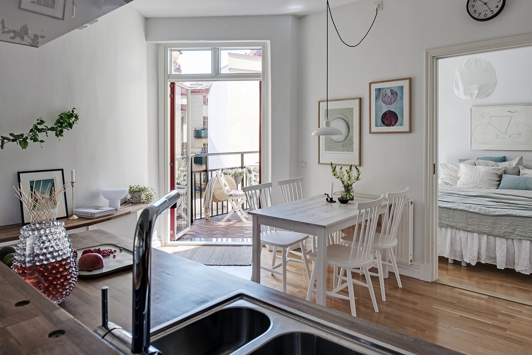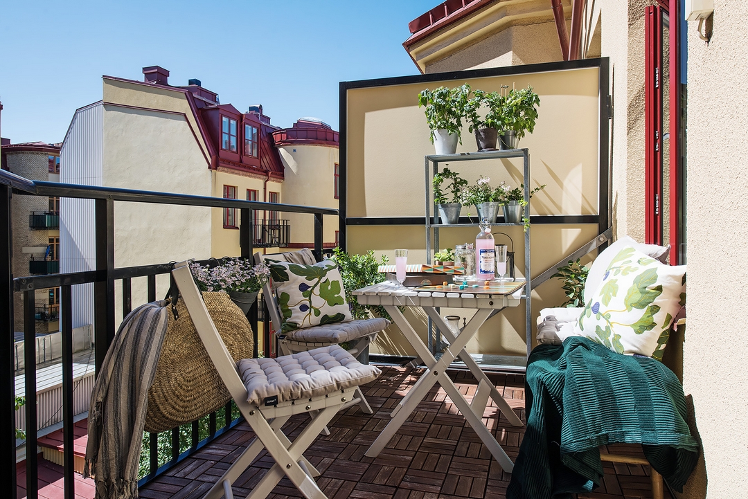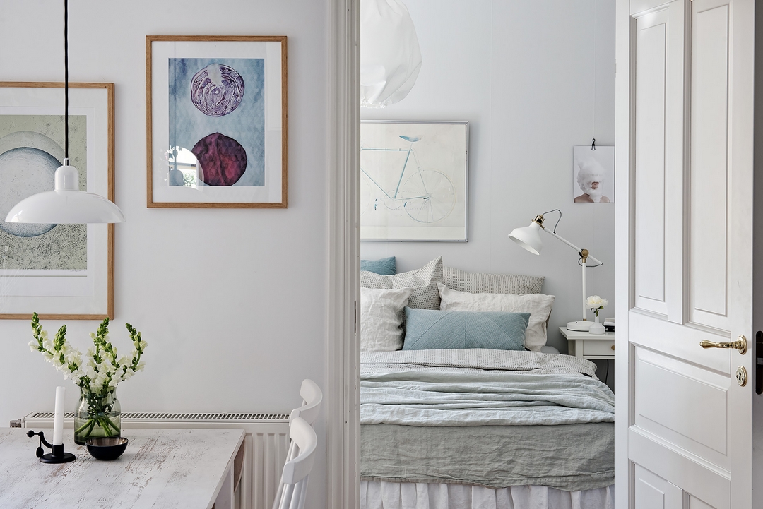 Un aménagement simple, mais plein de fraîcheur avec ses touches de bleu clair et ses nombreuses plantes.