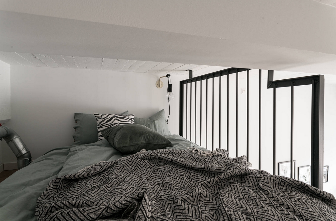 Dans ce studio, une hauteur réduite pour la chambre en mezzanine pour mieux profiter d’un joli volume dans l’espace principal.