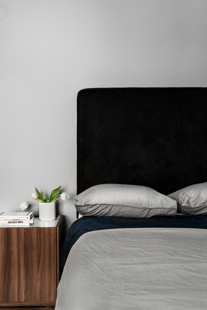 Un petit espace sobre et pragmatique, au style et aux teintes très masculins.