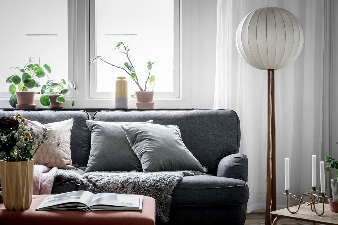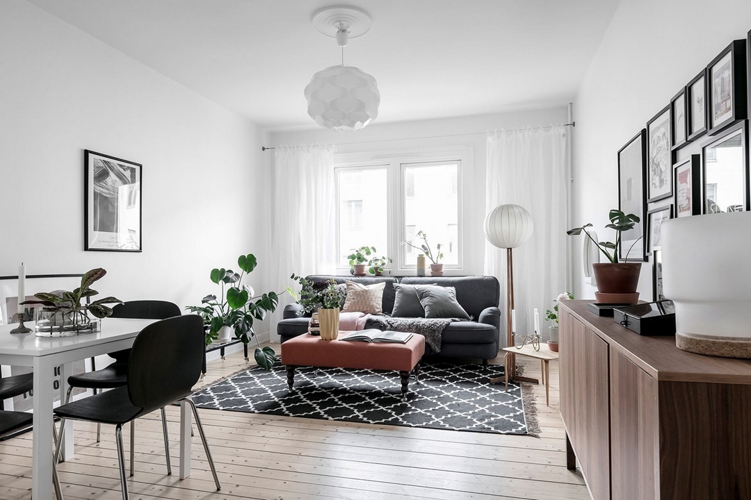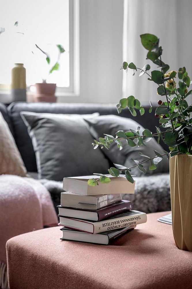 Plaids, coussin ou footstool… des notes roses pour un peu de tendresse dans la décoration noir et blanc.