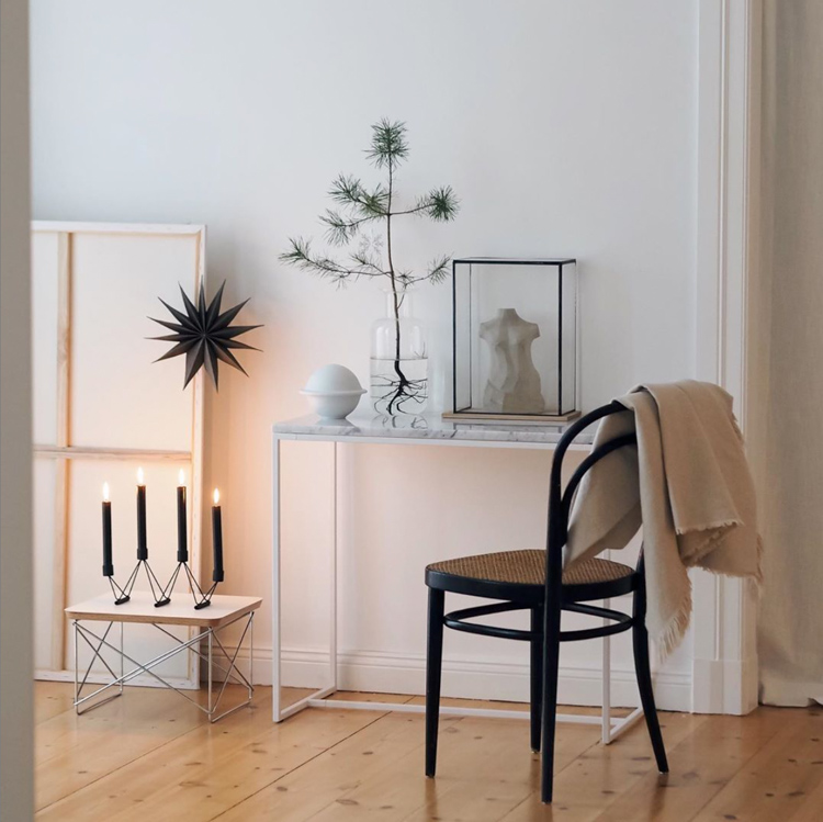 Friday friends, FRIDAY! And it’s a special one in Sweden today: as we’re celebrating Lucia. Alongside midsummer, the Lucia celebrations is one of my favourite. In case you’re not familiar with the concept, Lucia is an ancient mythical figure and a bearer of light in the dark Swedish winters. This morning parents across the country (myself included) waited in the dark, cameras at the ready, while our children participated in a special Lucia procession – wearing candles in their hair (gingerbread men, ‘tomten’ (Father Christmas) and other characters were also involved!). It’s a sight to behold! White must be on my mind – as I was immediately drawn to Katharina’s beautiful home in Berlin, Germany this morning. Katharina sells beautiful homeware pieces through her online shop Edel Weiss. Many of the pieces she sells can be spotted in her home, and jostle for position with a fab array of Scandinavian design lamps and cultural objects. Look out for the pretty festive touches too! Enjoy the tour!