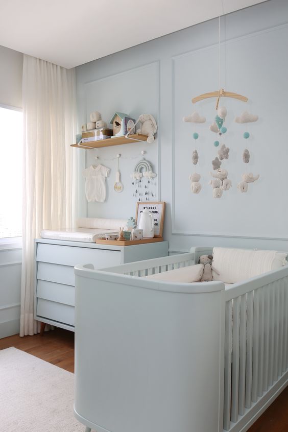 Suave e delicado, esse tom de azul realmente relaxa o bebê e amplia visualmente o espaço.
