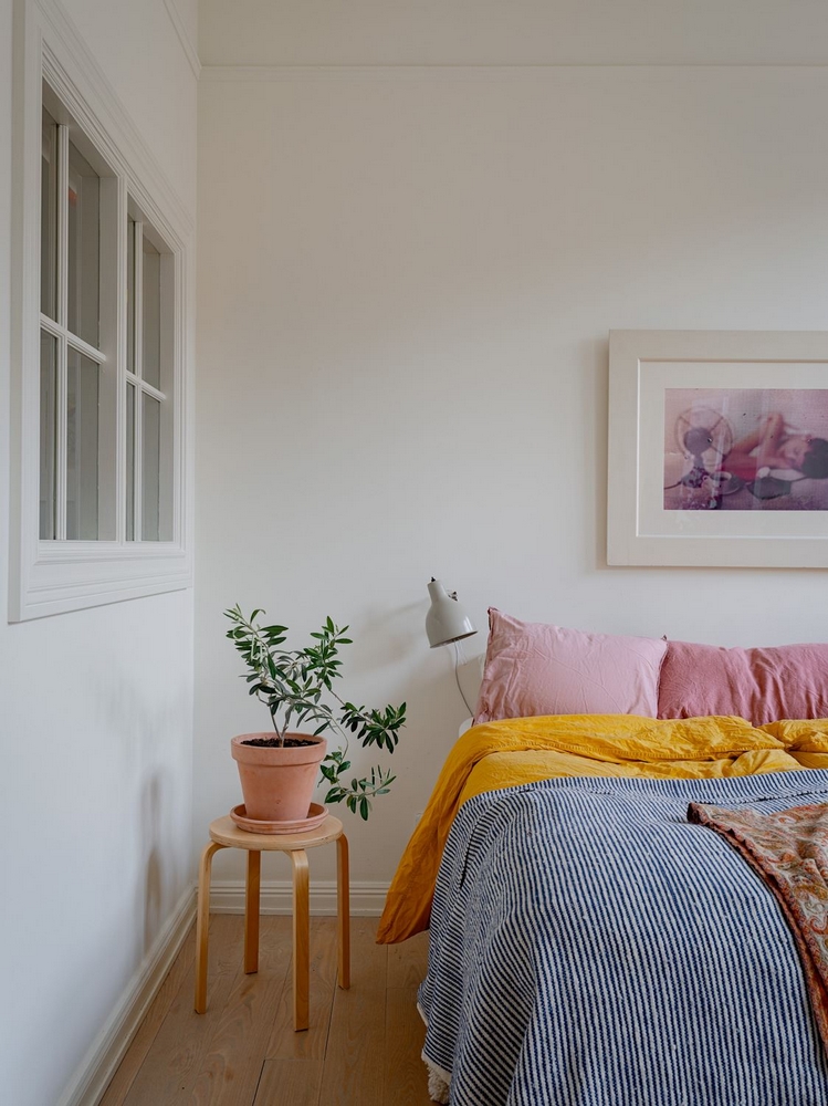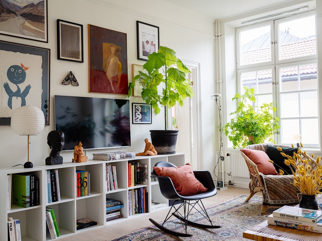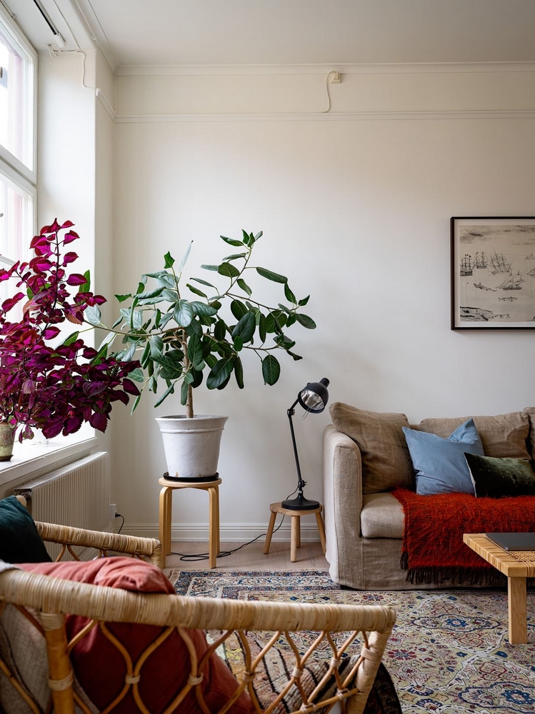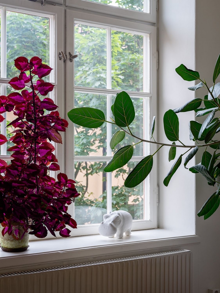 De grandes fenêtres, un peu de couleurs et des plantes, pour un appartement où il fait bon vivre.