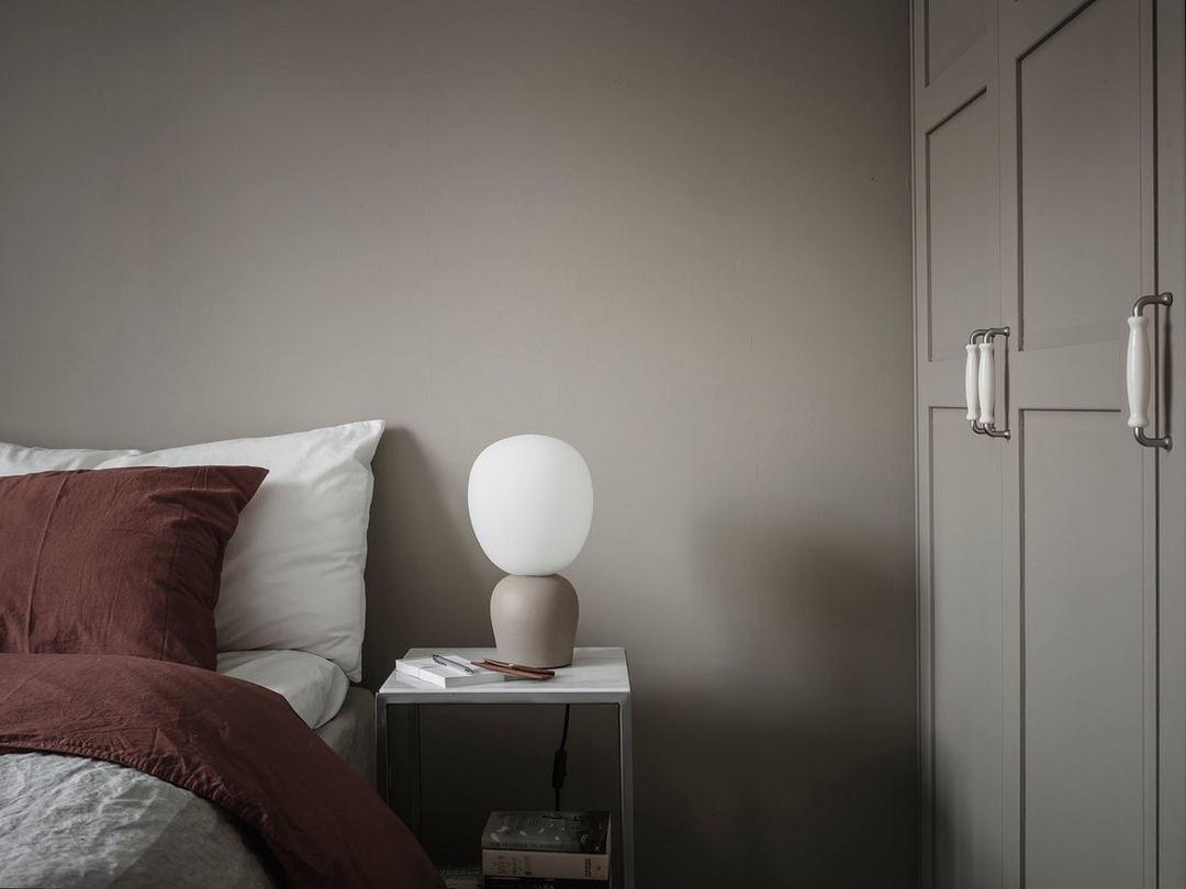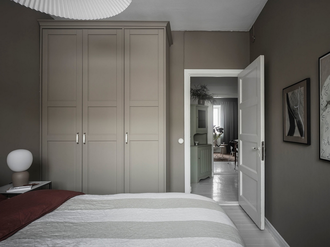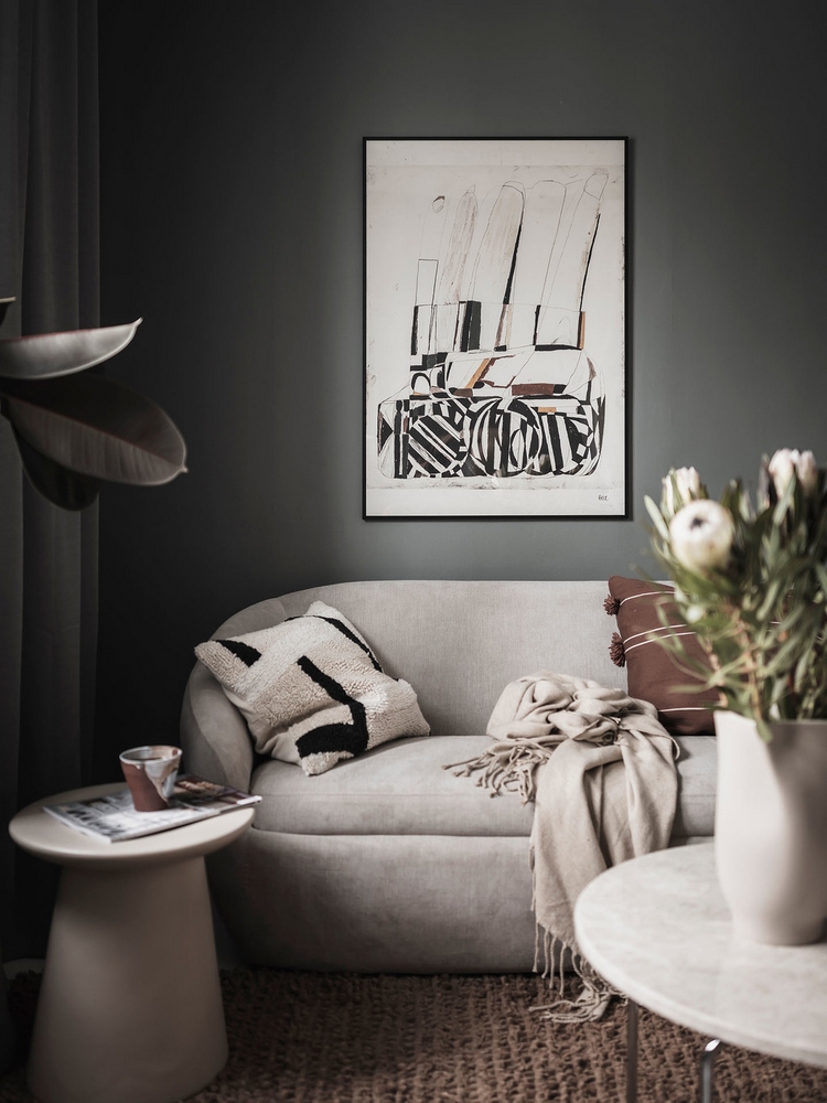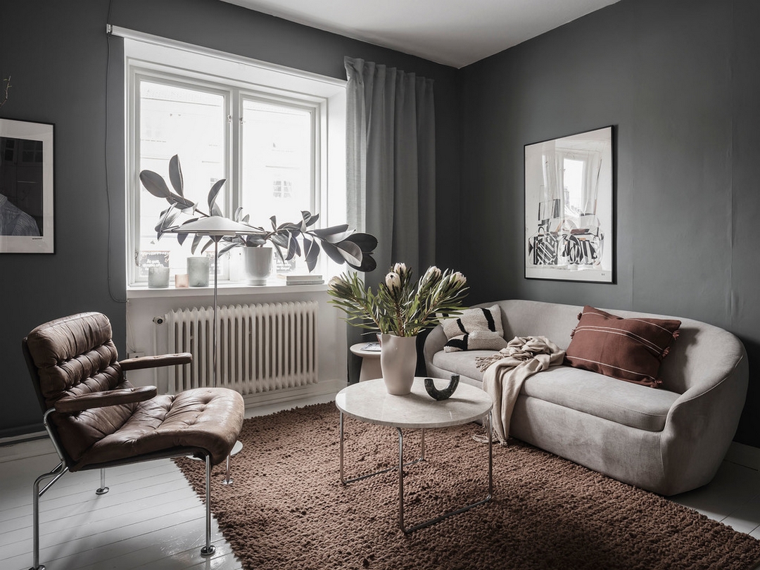 Gris, blanc et brun… les trois teintes qui dominent dans cet intérieur pour un résultat simplement efficace et plaisant.