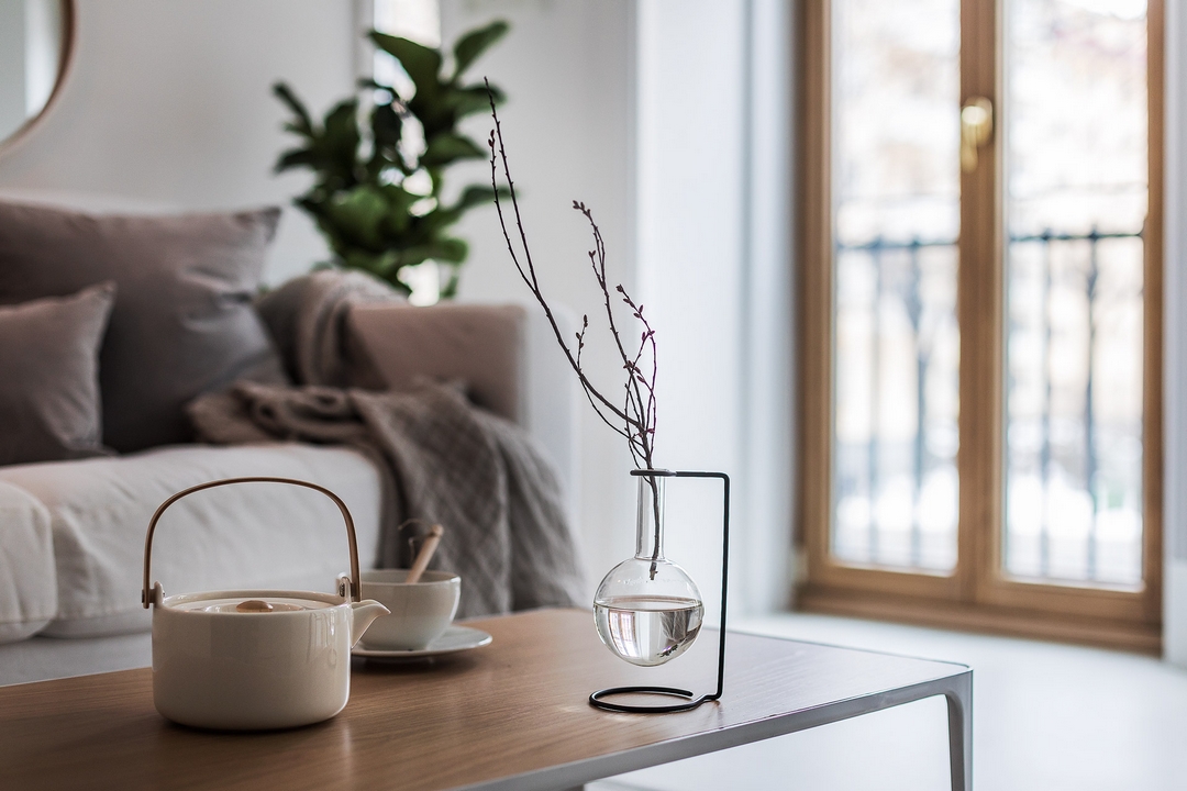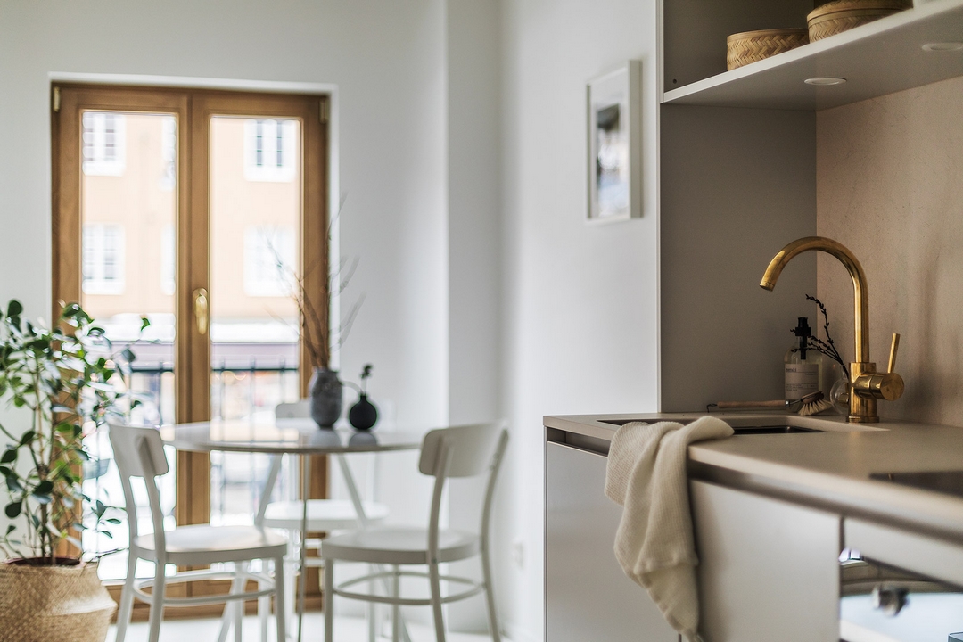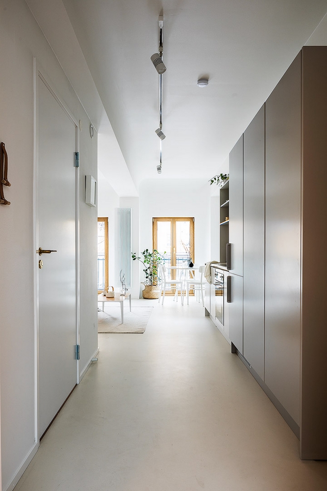 Des lignes sobres pour un petit appartement très agréablement efficace.