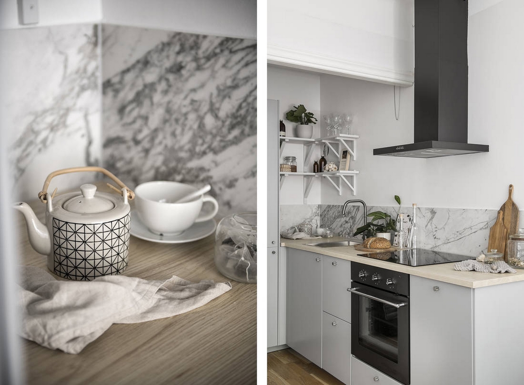 Ce studio de 22 m² est tout tendre avec ses couleurs gris pâle et de bois clair.