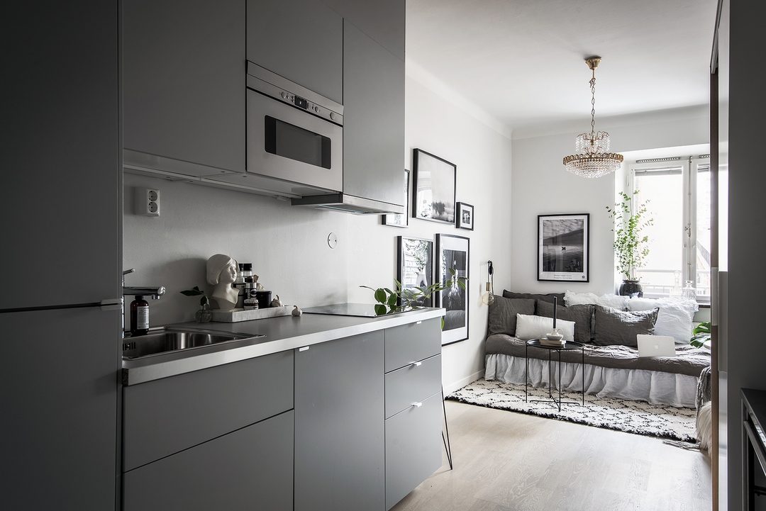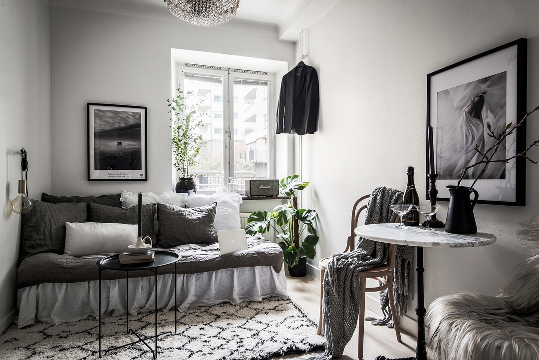 Seulement 19 m² et tout en longueur, pourtant ce petit espace arrive a être aussi beau que pratique.