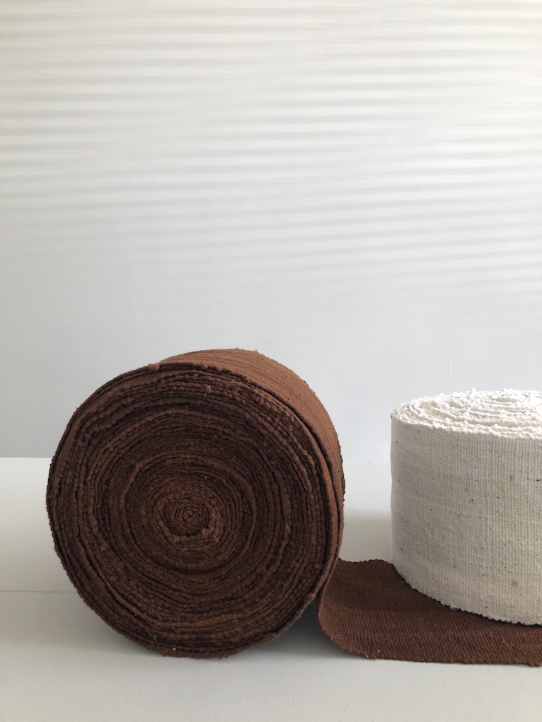 On vosgesparis I always love to show the little gems in the mass of interior design products. Some time ago I spotted an image with cotton rolls stacked on each other, it was love at first site as they reminded me of the antic handwoven rolled up linen bread cloth that belonged to my Sardinian mother in law. It took me some time to find out where these rolls came from and who posted that image, and my search brought me to Ella Hustinx, founder of Elle La.