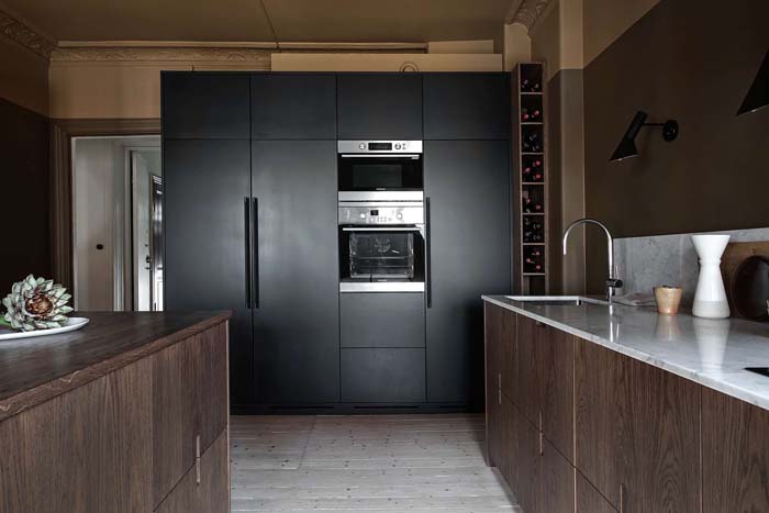 Mielenkiintoisia sisustuksia ja paljon tummia pintoja.