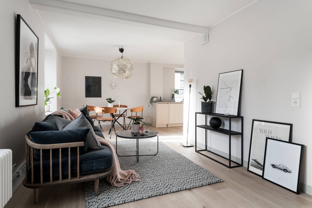 Une cuisine claire et moderne, d’originales chaises et un canapé aux formes arrondis composent un séjour frais et sympathique.